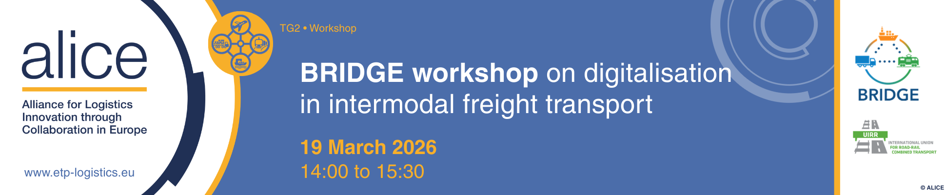 In collaboration with UIRR and the EU-funded BRIDGE project, ALICE is organising a dedicated workshop on the digitalisation of intermodal door-to-door freight transport, with a specific focus on road–rail–maritime transport chains.